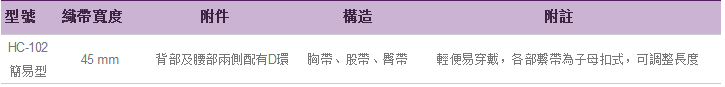 背部及腰部兩側配有D環,輕便易穿戴,各部系帶為子母扣式,可調整長度,安全可靠。